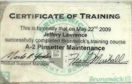 Jeff became a Brunswick Certified - A/A2 Pinsetter Mechanic in 2009 and brought along experience in lane conditioning with both pad and sanction